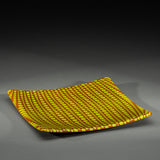 Sandcarved lime green enamel encased in clear on woodland brown glass.